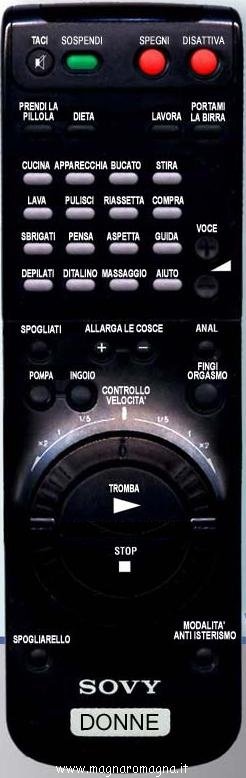 - Il telecomando che ogni uomo vorrebbe: il comanda donne. Con i tasti per ordinare: sbrigati, depilati, fai spogliarello, modalità anti isterismo, fingi orgasmo..