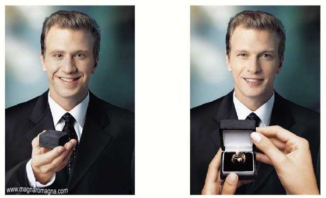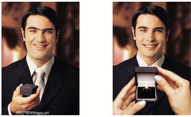 - Geniale pubblicità di gioielli: un uomo poco bello regala un diamante ad una donna, e ai suoi occhi diventerà un gran figo