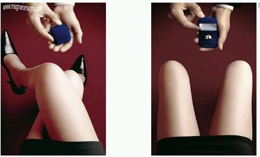 - Come fare se lei non ve la da? Basta regalarle un diamante e automaticamente le coscie si allargano, come in questa simpatica pubblicità