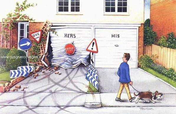 - Differenze nel modo di parcheggiare tra uomo e donna in questa simpatica vignetta: il garage di lei e di lui