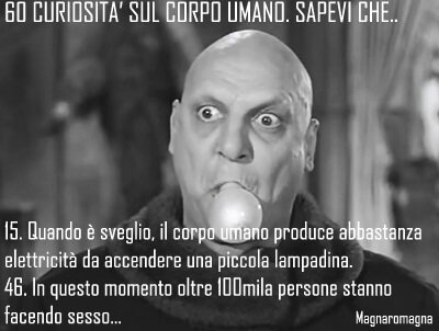 Scienza incredibile: 60 fatti strani ma veri sul nostro corpo. Forse non tutti sanno che.. 1. Nel nostro corpo c’è abbastanza ferro da costruire un chiodo lungo 7 centimetri. 2. Le rughe crescon ...