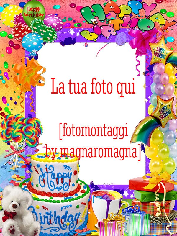 Vuoi fare un quadretto per gli auguri di buon compleanno con la foto che vuoi? O un creare invito per una festa di compleanno? Qui trovi cornici e quadretti gia’ pronti, dove ti sara’ facile inserire la foto (del festeggiato) che vuoi. Per creare il fotomontaggio scegli lo scenario che preferisci, segui le semplici istruzioni, e in pochi istanti otterrai un fotoeffetto finale da inviare come cartolina o da scaricare nel tuo computer, da condividere anche su Facebook. Un modo semplice, gratuito e simpatico per fare gli auguri a chi vuoi tu o per realizzare facilmente un invito per una festa. La nuova versione si trova su Fotomontaggi.net/cartoline/compleanno/ , veloce, compatibile con tutti i browser e smartphone, dove verranno aggiunte sempre nuove grafiche. Se invece vuoi fare un biglietto di invito ti suggeriamo questa sezione.