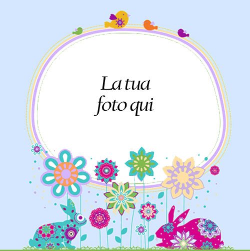 - Cartoline Buona Pasqua: con colombe e coniglietti Realizza facilmente una cartolina per auguri pasquali con la tua foto: potrai facilmente aggiungerci una cornice festosa, con colombe e coniglietti colorati