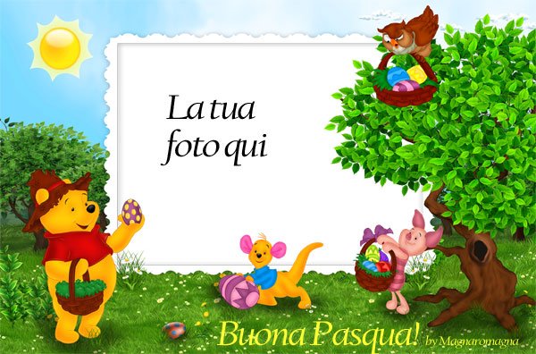 - Cartoline di Pasqua: auguri per bimbi Crea una cartolina personalizzata da pubblicare su Facebook per inviare gli auguri di Buona Pasqua con la tua foto. Puoi facilmente applicare una simpatice cornice con orsetto, gufo e ad altri animaletti con uova pasquali alla foto che vuoi.