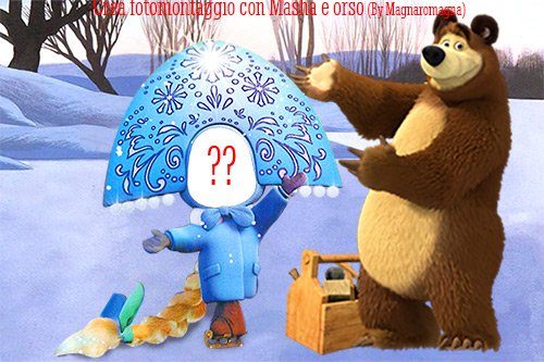 - Cartoni animati: Masha e Orso. Vuoi fare una bella cartolina fotomontaggio con il simpatico orso e la monella Masha? Carica la tua foto (o quella di tuo figlio) e questo programma online gratuito ti permettera’ di metterla al posto del viso di Masha.