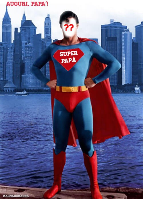 - Festa Papà il mio super eroe Vuoi fare gli auguri per la festa del papa’ o per il compleanno del babbo? Fallo diventare un super eroe! Crea un fotomontaggio con il volto di tuo padre e il corpo di Superman, e crea una cartolina da scaricare, da inviare e condividere per fare gli auguri al tuo super eroe preferito: tuo papa’!