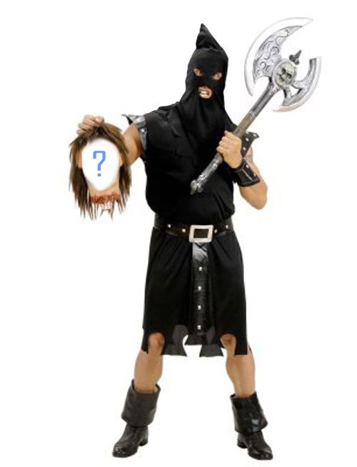- Boia con testa decapitata – Sezione costumi e scherzi Chi è stato decapitato da questo boia, che mostra la testa mozzata? Chi è la vittima di questo barbaro, che con la sua arma tagliente ha tagliato di netto la testa e la mostra al mondo? Decidilo tu, mettendo il volto che vuoi al posto della povera vittima. Ideale per fare uno scherzetto agli amici, sopratutto a carnevale oppure ad Halloween, oppure per metterci il viso di un personaggio famoso