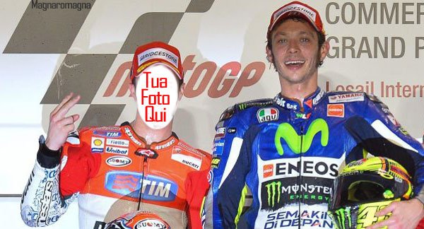 Vuoi mettere il tuo volto al posto di un calciatore famoso o durante un’azione di una partita di basket NBA? Al posto di un pilota di Formula1 o sul podio di un Gran Premio di MotoGP insieme a Valetino Rossi? O di un ciclista al traguardo o durante un lancio con il paracadute? O in una azione di rugby, wrestling e tanti altri scenari? Questo programma online ti permette di inserire facilmente il volto che vuoi tu (il tuo, quello di un amico o di un personaggio pubblico) in uno degli scenari già pronti: seleziona l’effetto e segui le semplici istruzioni. Potrai ridimensionare, ruotare, cambiare colore alle immagini per ottenere un fotoeffetto perfetto. E condividerle con i tuoi amici. E torna a visitarci, aggiungeremo altri template (aggiornamenti e nuova versione qui). Trovi anche una sezione dedicata esclusivamente al mondo del calcio: