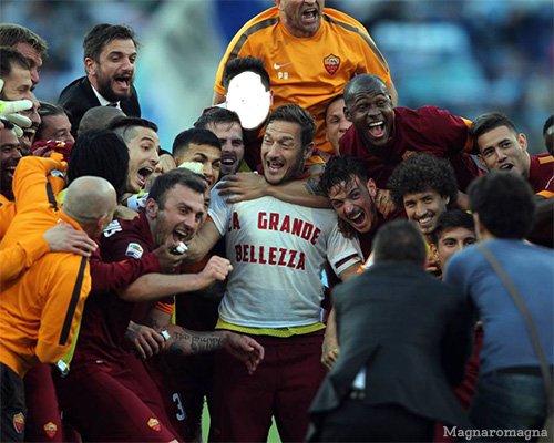 - festa Roma dopo derby Sei un tifoso romanista e vuoi festeggiare insieme al capitano Totti con la maglia la grande bellezza e tutta la squadra dopo la vittoria nel derby? O vuoi fare uno scherzo ad un amico laziale? Con questo programma online puoi inserire il volto che vuoi al posto di uno dei giocatori, nella foto di gruppo a fine partita contro la Lazio