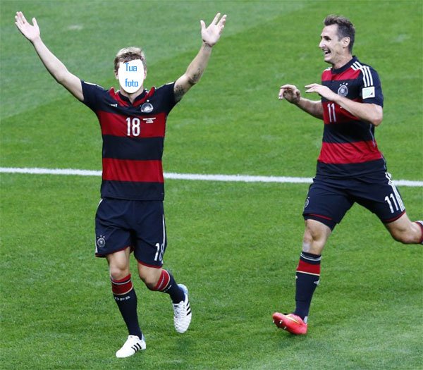 - Goal della Germania. esultanza goal Germania Giocatori tedeschi in festa dopo un gol: metti il viso che vuoi al posto di Kroos mentre viene abbracciato da Klose, dopo i gol di Muller.