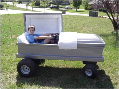 L’accessorio perfetto per Halloween: la bara-mobile. Realizzarla è semplice: bastano una bara e 4 ruote..