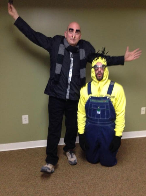 Come sembrare i protagonisti del film Cattivissimo me: basta una tuta e un paio di ciglia cespugliose, e una chaloppette con felpa gialla e due occhialoni da motociclista..