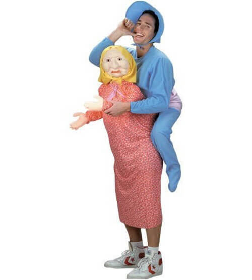 Un travestimento da fare in coppia: il risultato è un letto con donna partoriente e un bebè che sta nascendo..