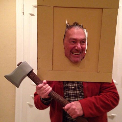 Ricordate la scena epica del film Shining, quando Jack Nicholson sfonda la porta con l’ascia in cerca della moglie? Ecco il travestimento semplicissimo e di sicuro effetto: un cartone che simula la porta sfondata, e un’ascia, e l’effetto da paura è servito
