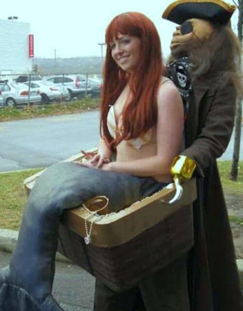 Un trucco ben riuscito, ovvero due personaggi in uno. Un po’ più complicato (serve un finto pirata e una cassa del tesoro, e una coda da sirena) ma il risultato finale è assicurato!