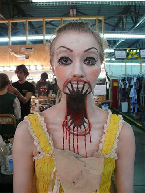 Un risultato mozzafiato degno del miglior body: si disegna una bocca spalancata direttamente sul collo, con denti insanguinati, in modo da creare un effetto di bocca gigante