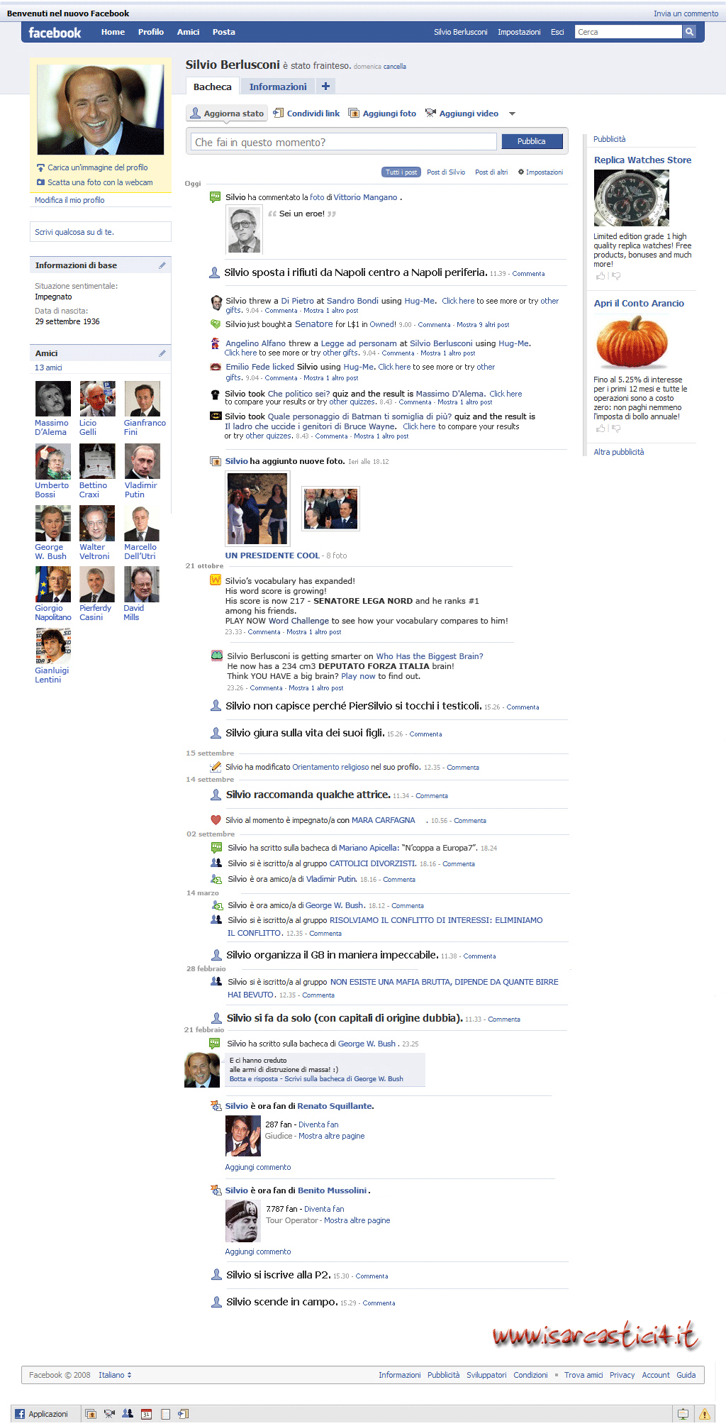 Un imperdibile fotomontaggio della pagina personale di Silvio Berlusconi sul popolare social network